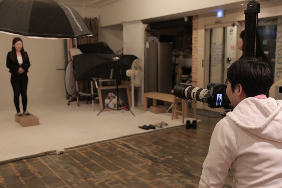 그 이유는, 조금 아래에서 위로 향하는 구도로 촬영하며 서있는 자세로 촬영해 준답니다.